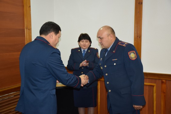 Медаль «Құқықы тәртібін қамтамасыз етіге қосқан үлесі үшін» вручена майору полиции Талгату Ерденову, заместителю командира роты дорожно-патрульной полиции МПС ДВД. Почетной грамотой МВД РК награжден начальник Местной полицейской службы ДВД подполковник полиции Серик Баймуканов.
