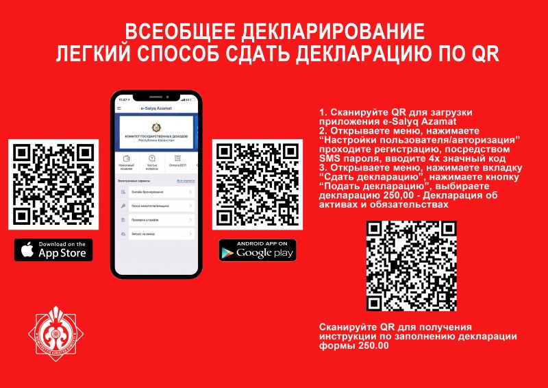 Как известно Казахстан вступил в 3 этап всеобщего декларирования. Декларируют доходы и имущество индивидуальные предприниматели и их супруги, руководители и учредители юридических лиц и их супруги.