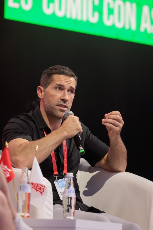 Приветствуя фанатов, он в первую очередь отметил превосходную организацию фестиваля Comic Con в Астане в сравнении с другими подобными конвентами в других странах. Также он сказал несколько теплых слов об Астане: