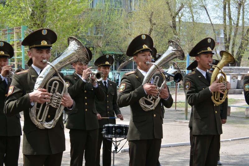 У дома ветерана Великой Отечественной войны, фронтовика, кавалера многих боевых и трудовых наград, Почетного гражданина города Кокшетау Асылбека Давлетова курсанты Кокшетауского технического института Комитета по ЧС МВД РК устроили своеобразный флешмоб-концерт. Ребята, играющие в духовом оркестре института, сами выразили желание подготовить небольшой концерт из песен военных лет и навестить ветеранов с поздравлениями. Выступления курсантов тепло приняли не только сами герои дня, но и их родственники и соседи. Так было и во дворе у Асылбека Давлетова. Ветеран вышел во двор, похвалил оркестр, пообщался со студентами и малышами, игравшими возле дома.