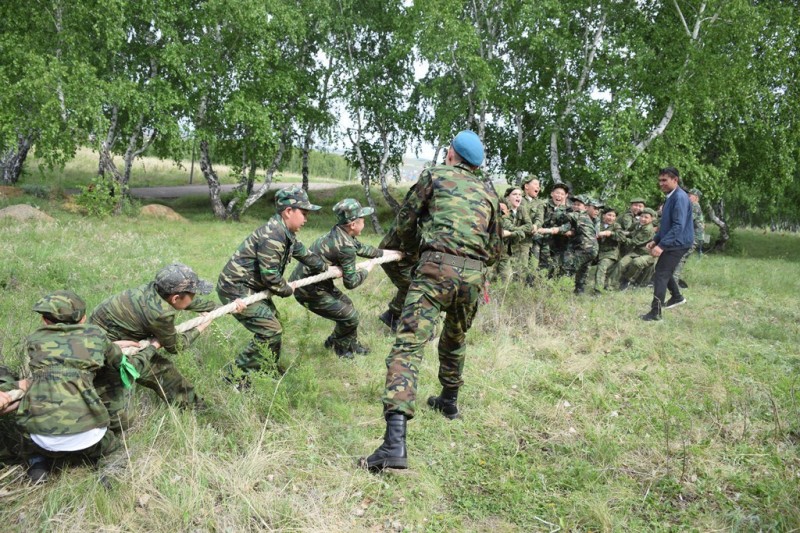 После полевой кухни, которая придала мальчишкам сил и бодрости состоялась военно-полевая игра «Зарница». В целом, она состояла из 10-ти этапов, самыми волнительными из которых для ребят оказались «Найти знамя», «Скололазы», «Минное поле» и перетягивание каната.