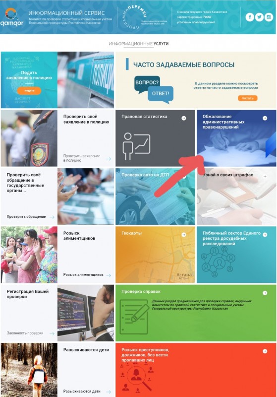 Ол үшін Qamqor.gov.kz ақпараттық сервисінде «Әкімшілік құқық бұзушылықтарға шағым жасау» қосымша бетін таңдау қажет.