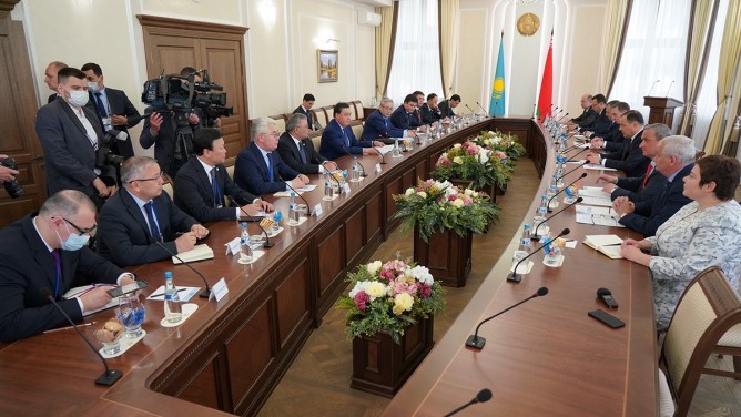 Рассмотрены актуальные вопросы взаимодействия в рамках Содружества Независимых Государств, Евразийского экономического союза и других интеграционных объединений. По итогам I квартала 2021 года двусторонний товарооборот составил $175,6 млн, что на 12% выше, чем за аналогичный период 2020 года. В Казахстане активно работают 8 совместных предприятий РК и РБ по производству крупной промышленной и сельскохозяйственной техники с локализацией на уровне 40%.