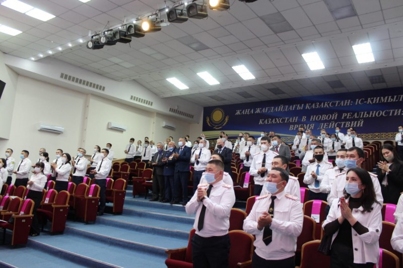 Посетив выставку, личный состав прошёл на торжественную часть мероприятия, которая началась с минуты молчания - дань памяти тем, кто в мирное время отдал свою жизнь ради спокойствия и безопасности казахстанцев.