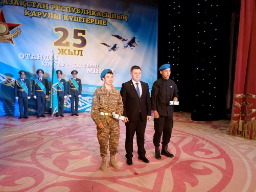 В рамках празднования 25-летия Вооруженных сил и 72-ой годовщины Победы в Великой Отечественной войне 1941-1945 г.г. в городе Кокшетау состоялись торжественные проводы призывников для прохождения срочной службы в рядах Вооруженных Сил Республики Казахстан.